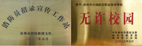 學(xué)校于2023年3月被泉州市人力資源和社會保障局授予第一個“泉州市產(chǎn)教融合應(yīng)用型特色?!?,于2023年5月被泉州市消防救援支隊授予“消防員招錄宣傳工作站”。