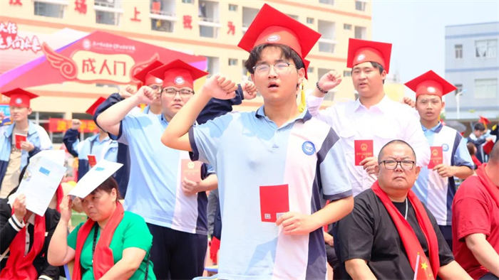 滾滾而來(lái)的年華,迎來(lái)永遠(yuǎn)熱烈的十八歲。站在十八歲的起點(diǎn),全體學(xué)生面向國(guó)旗、手持憲法、莊嚴(yán)宣誓。誓言鏗鏘有力,志向高遠(yuǎn)無(wú)窮。