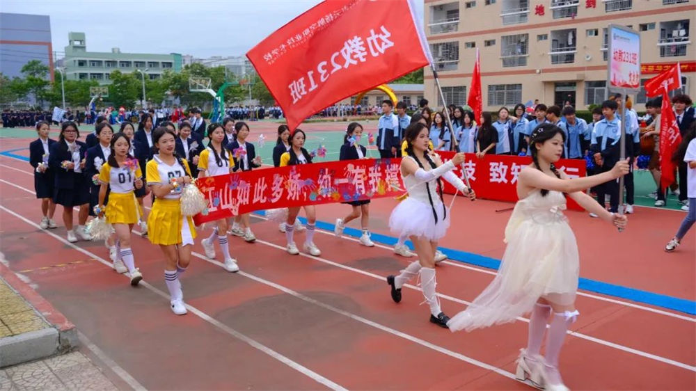 入場式上,各方陣精彩亮相。國旗護衛(wèi)隊英姿颯爽,手擎鮮艷的五星紅旗引領(lǐng)入場隊伍步入會場,校旗護衛(wèi)隊緊隨其后,彰顯著云揚航空職業(yè)技術(shù)學(xué)校的精神與榮耀。教師方陣精神昂揚,步履整齊。各個班級方陣驚艷出場,他們口號響亮,步伐堅定,充分展現(xiàn)出云揚學(xué)子的青春活力與昂揚斗志。